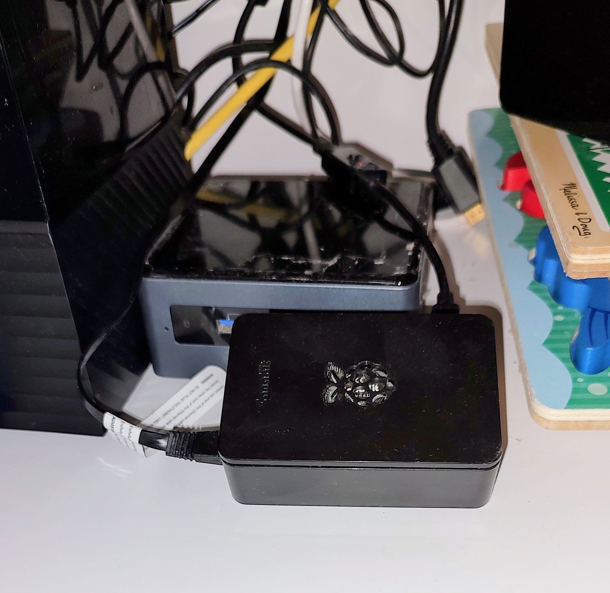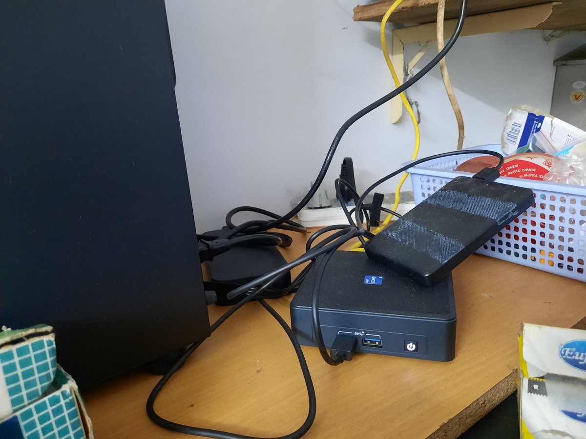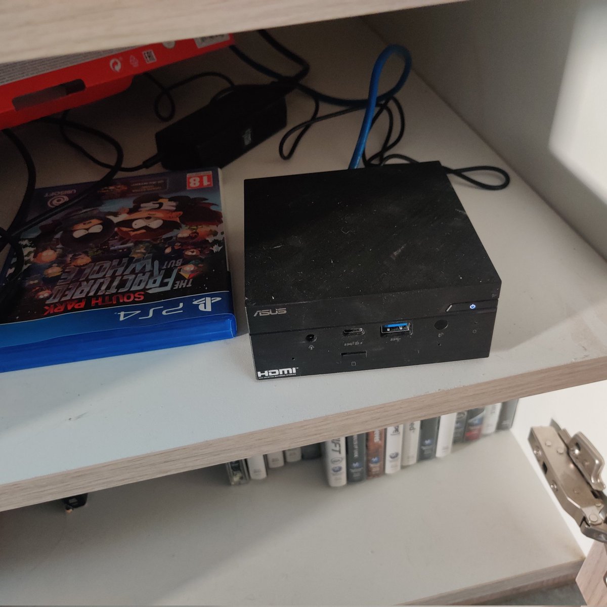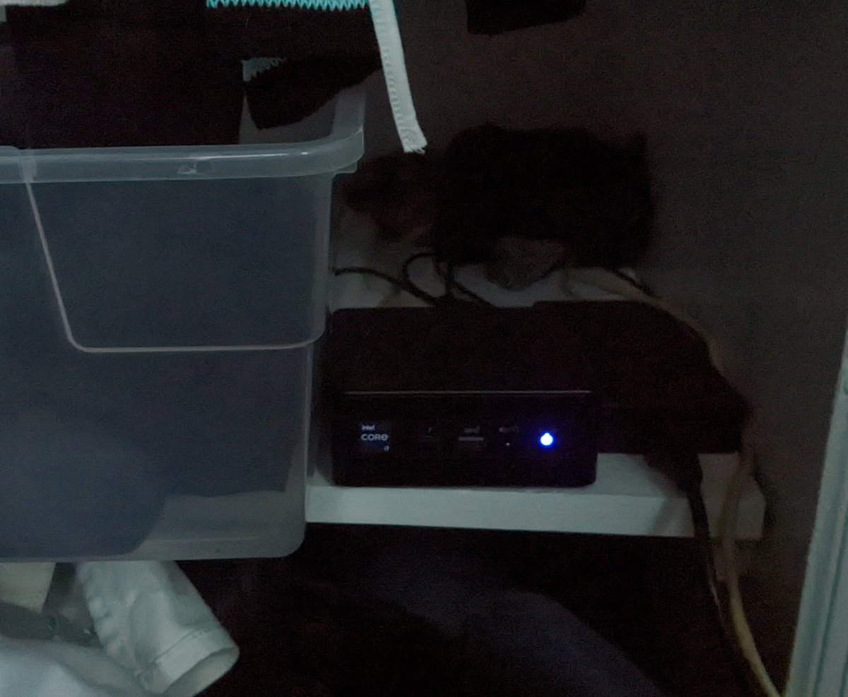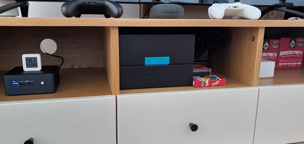 Among the board game, my nuc found a cozy home away from the dust. 🏡