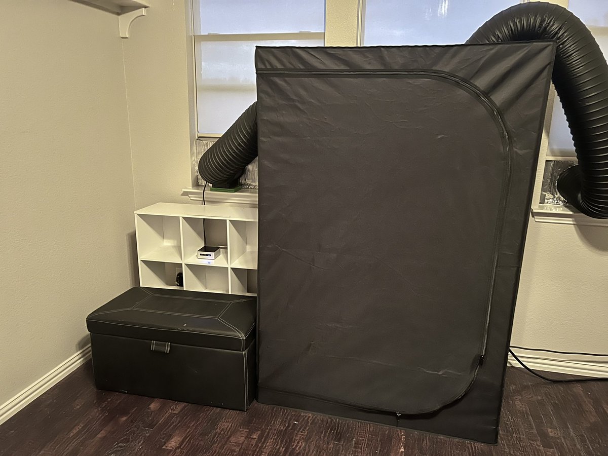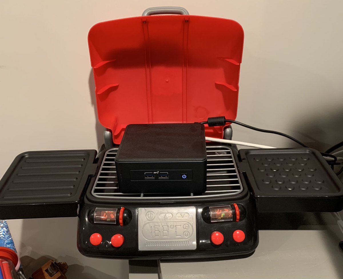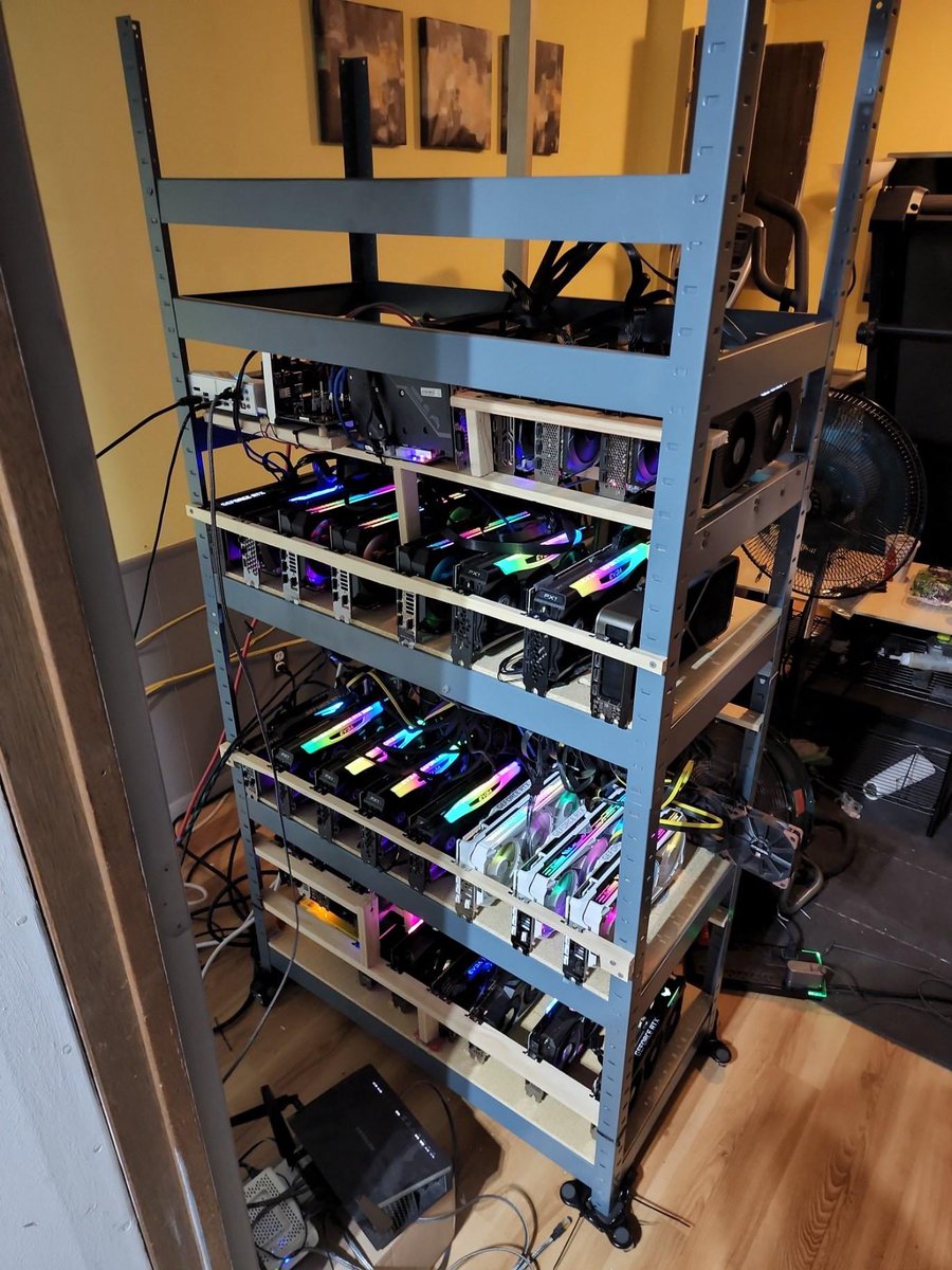 This is GREAT! On the right, you see a ventilation tent that contains a 10-card GPU miner, on the left, you see a NUC, that produces about the same amount of Ether (according to the submitter), but uses a fraction of the power and generates a fraction of the heat. #stakefromhome https://t.co/PWSQJQcUyK