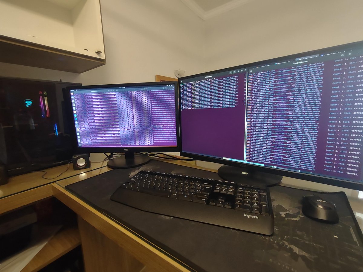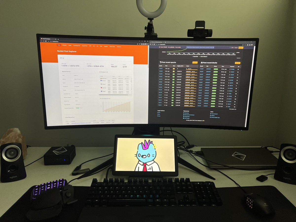 This setup is running some solo validators and some @Rocket_Pool validators. Have you ever noticed that people are so passionate about Rocket Pool? It's a win for everyone: Good for the network, good for the stakers, good for the liquidity token holders. #stakefromhome https://t.co/WyEr0CbTYT