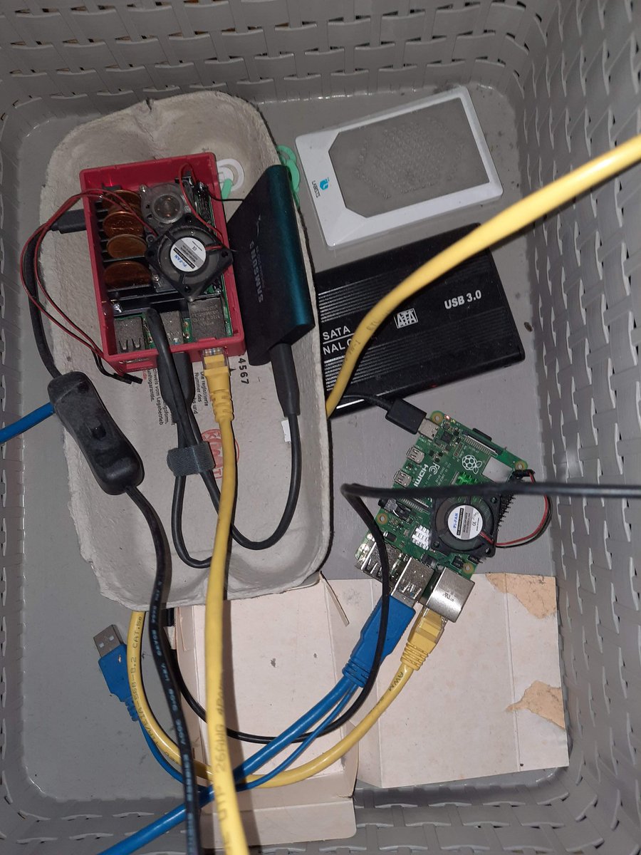 Humble rigs are my favorite! I'm still parsing this one.. I see two Raspberry Pi's, one with coins in the heat sinks. Looks like it's in an egg carton in a basket.. ? What have you got? #stakefromhome https://t.co/UswPfQkGlW