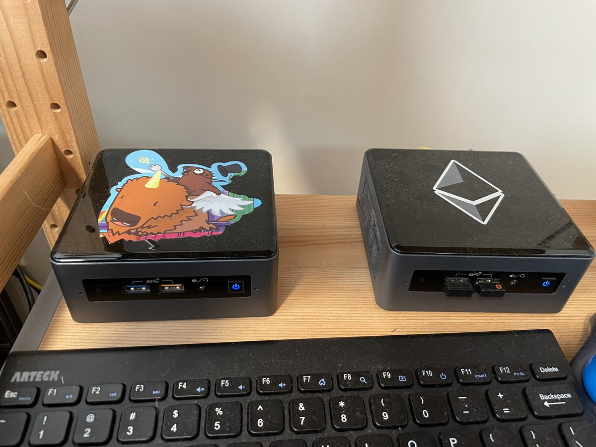 (shared privately):"NUC running geth and prism. With a vape for scale 🤣 absolutely silent forget its even there most the time." #stakefromhome https://t.co/tcm8ZsxCJQ