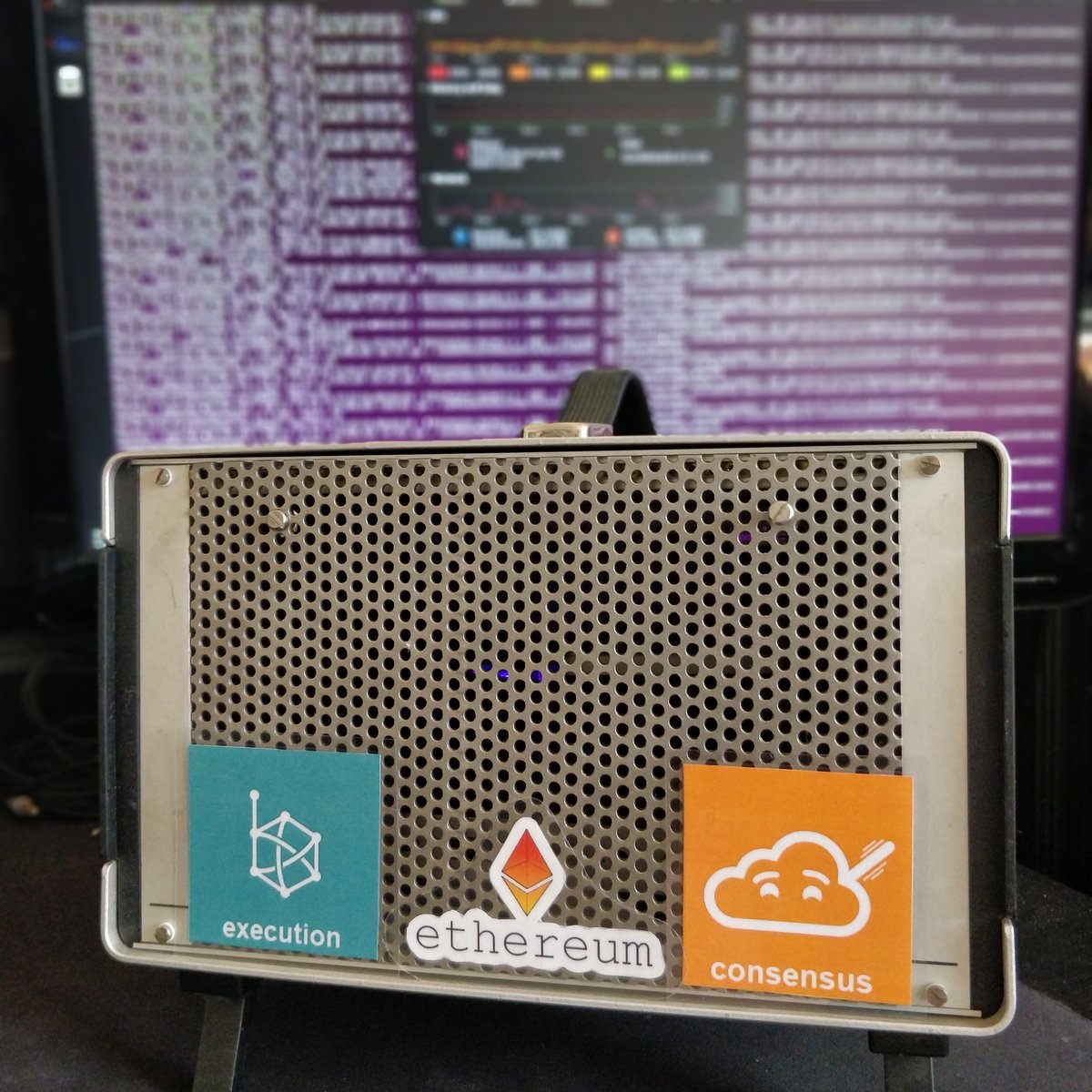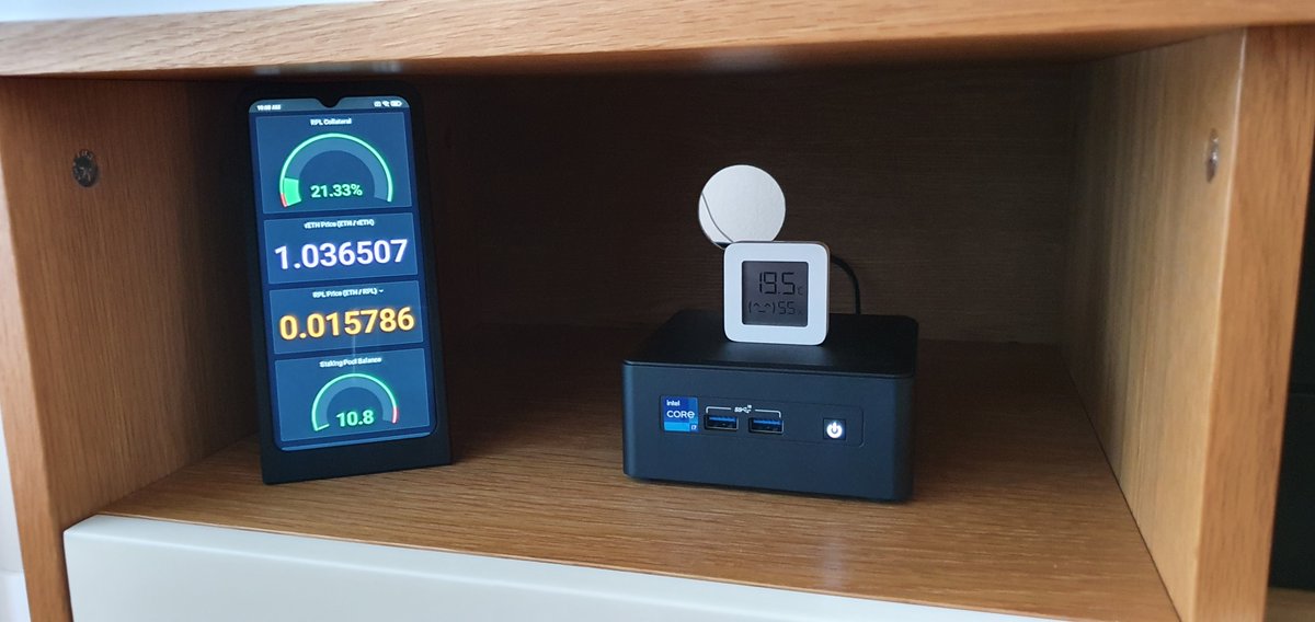 My full Ethereum staking node, NUC 11, 2TB SSD. Has run flawlessly for 15 months #stakefromhome https://t.co/cAAttKSd38